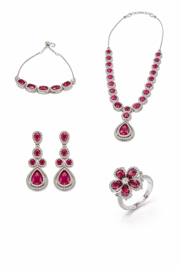 Suitable for all age groups, this complete set includes a necklace, earrings, bracelet, and statement ring, making it a perfect gifting option as well.