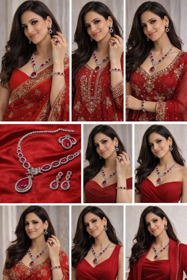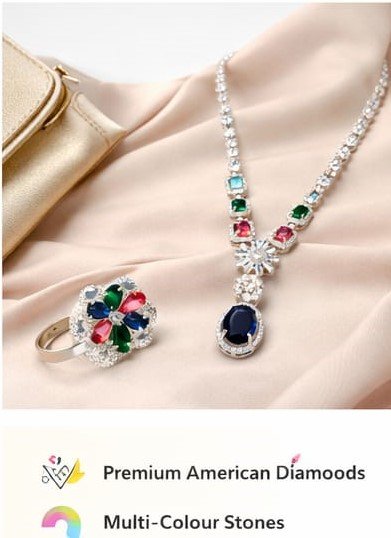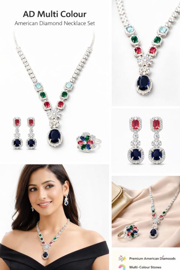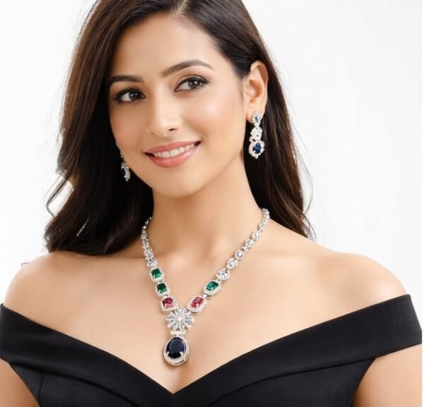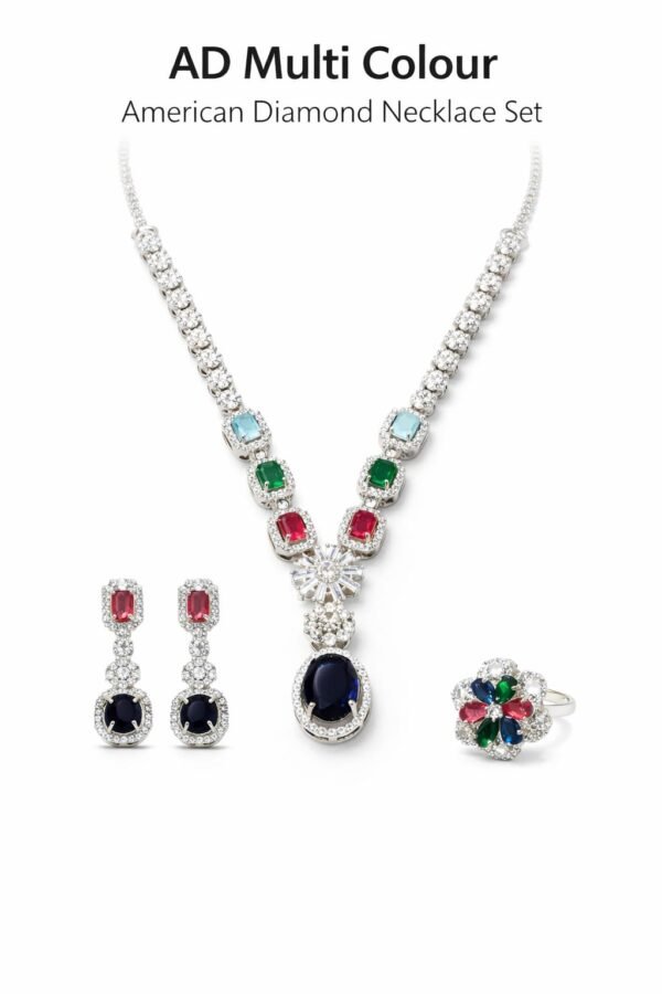 ಎಡಿ ಮಲ್ಟಿ ಕಲರ್ ಅಮೆರಿಕನ್ ಡೈಮಂಡ್ ನೆಕ್ಲೆಸ್ ಸೆಟ್ – ಸೆಲೆಬ್ರಿಟಿ ಲುಕ್