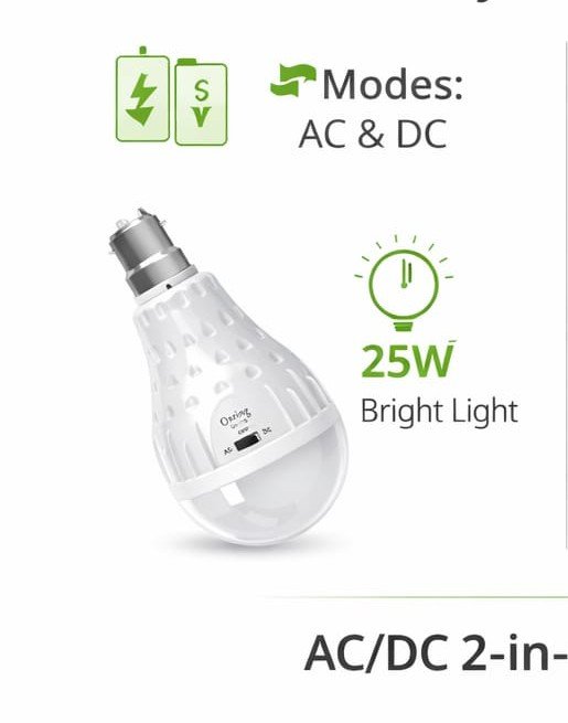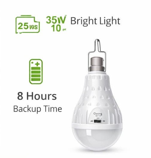 Osring Rechargeable AC/DC 2-in-1 Bulb – Model 71B is a powerful and reliable lighting solution designed for both regular electricity use and power-cut situations. This bulb works on AC power when electricity is available and automatically switches to DC battery mode during power failure. With bright 25W light output and up to 8 hours backup, it is ideal for homes, shops, offices, and emergency use. The built-in hanging clip makes it easy to use anywhere.