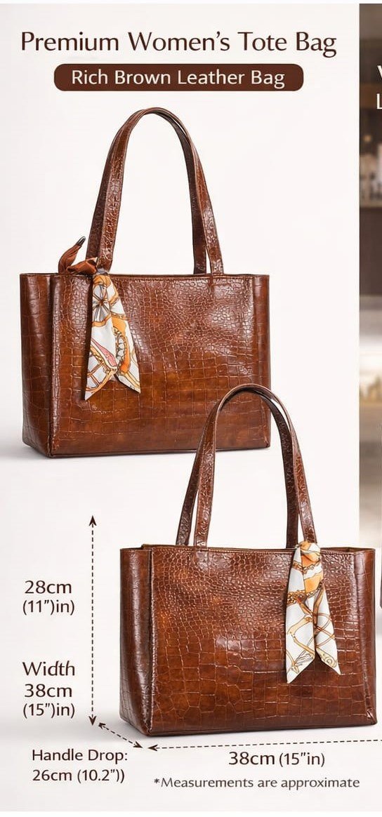 ಪ್ರೀಮಿಯಂ ಶುದ್ಧ ಲೆದರ್ ಮಹಿಳೆಯರ ಟೋಟ್ ಬ್ಯಾಗ್ – ರಿಚ್ ಬ್ರೌನ್ ಫಿನಿಷ್